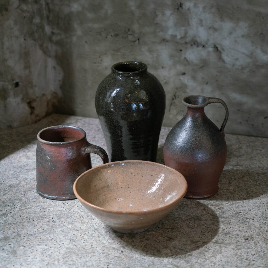 現在、居を構える宮城県七ヶ宿の野山で取れる粘土を用いて作られている安藤の器は、作者同様に素朴さと優しさ、そして実直な力強さも兼ね備えています。土味の良い枇杷色、焼締の力強い赤鉄色、独特な黒色を得意とし、確かな技術で作られた温かみのある器たちは、使っていくことで育ち、皆さまの生活と馴染んでいくことでしょう。