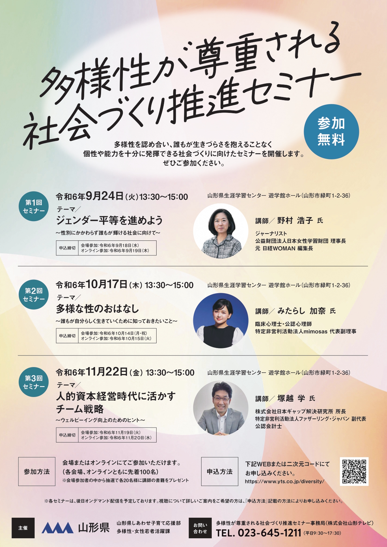 県では、多様性を認め合い、誰もが生きづらさを抱えることなく個性や能力を十分に発揮できる社会づくりに向けて、セミナーを開催します。