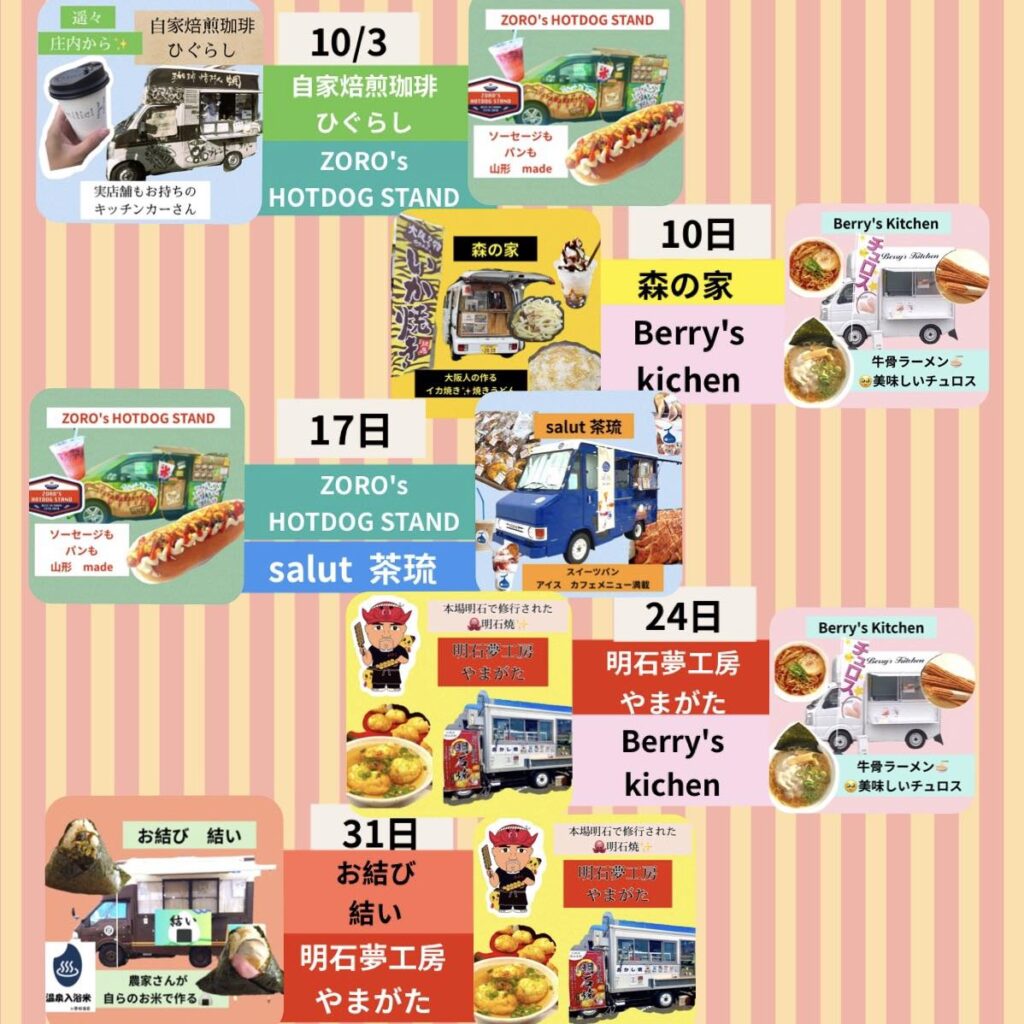 さまざまなキッチンカーやお店が東口の宮町に日替わりで来てくれる、