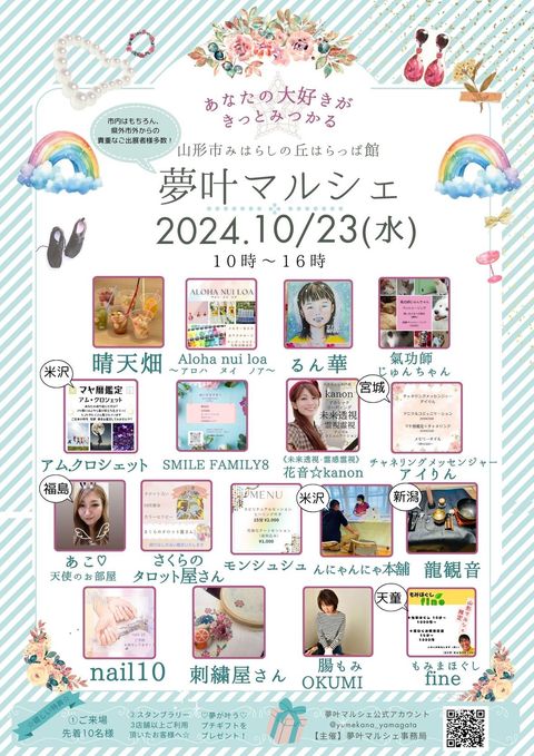 連絡先 | 【主催】 夢叶マルシェ事務局 お問い合わせ 070-2326-1370 happyluckymail758@yahoo.co.jp InstagramDM @yumekana_yamagata |