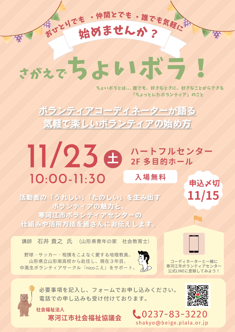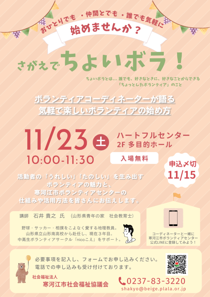 連絡先 | 社会福祉法人 寒河江市社会福祉協議会 TEL 0237–83-3220 |