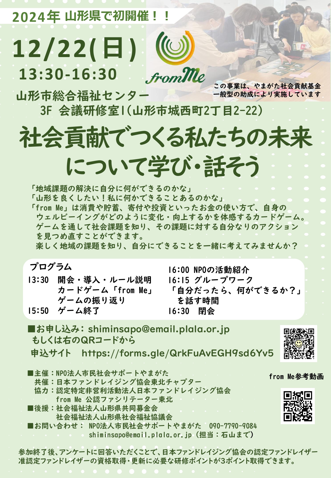 連絡先 | NPO法人市民社会サポートやまがた TEL:090-7790-9084 ※メールはチラシに記載のアドレスまで |