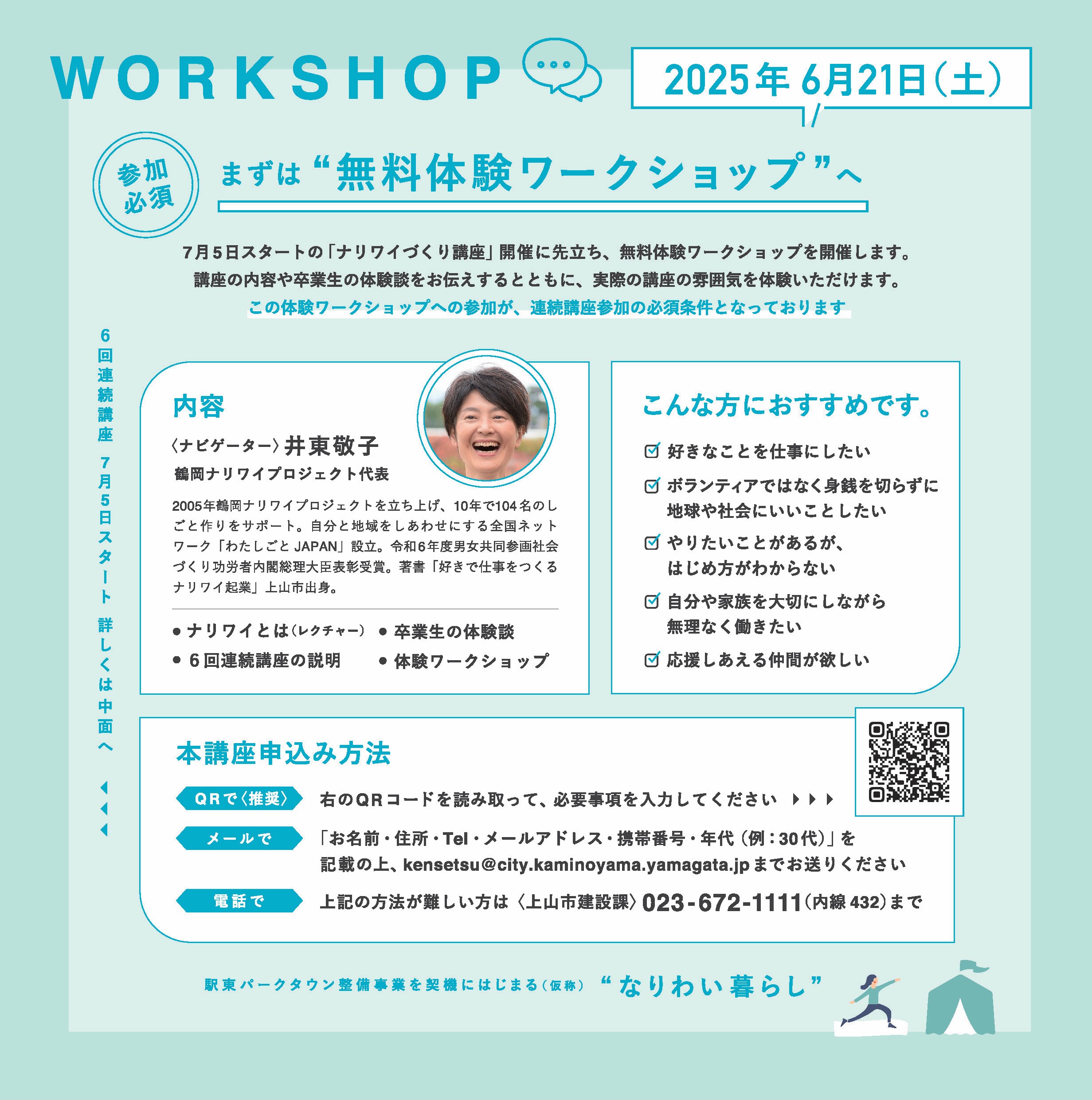 ENJOY!ナリワイ部かみのやま 無料体験ワークショップ開催