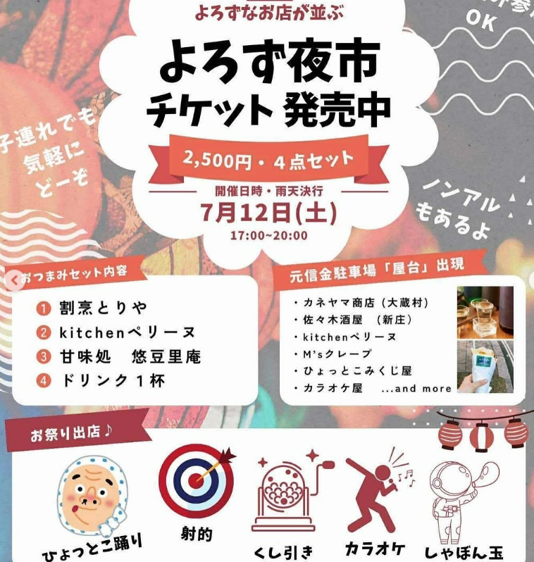 昼の「よろず市」に続いて、夜は “よろず夜市” を開催します!