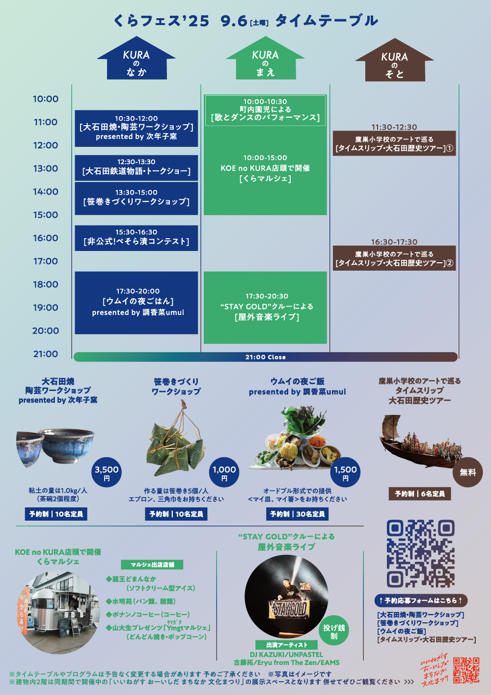 ?「※要予約」の企画につきましてはチラシ掲載(添付ファイルにもあり)の二次元バーコード[くらフェス’25予約フォーム]または[お電話]にてご連絡ください。