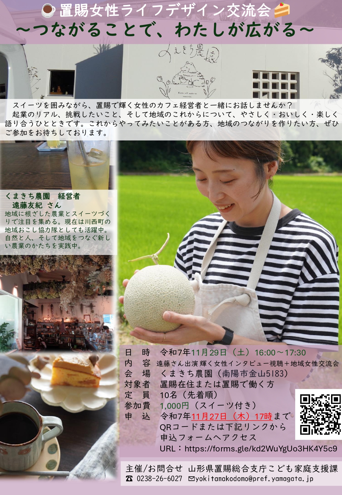 スイーツを囲みながら、置賜で輝く女性のカフェ経営者と一緒にお話しませんか?