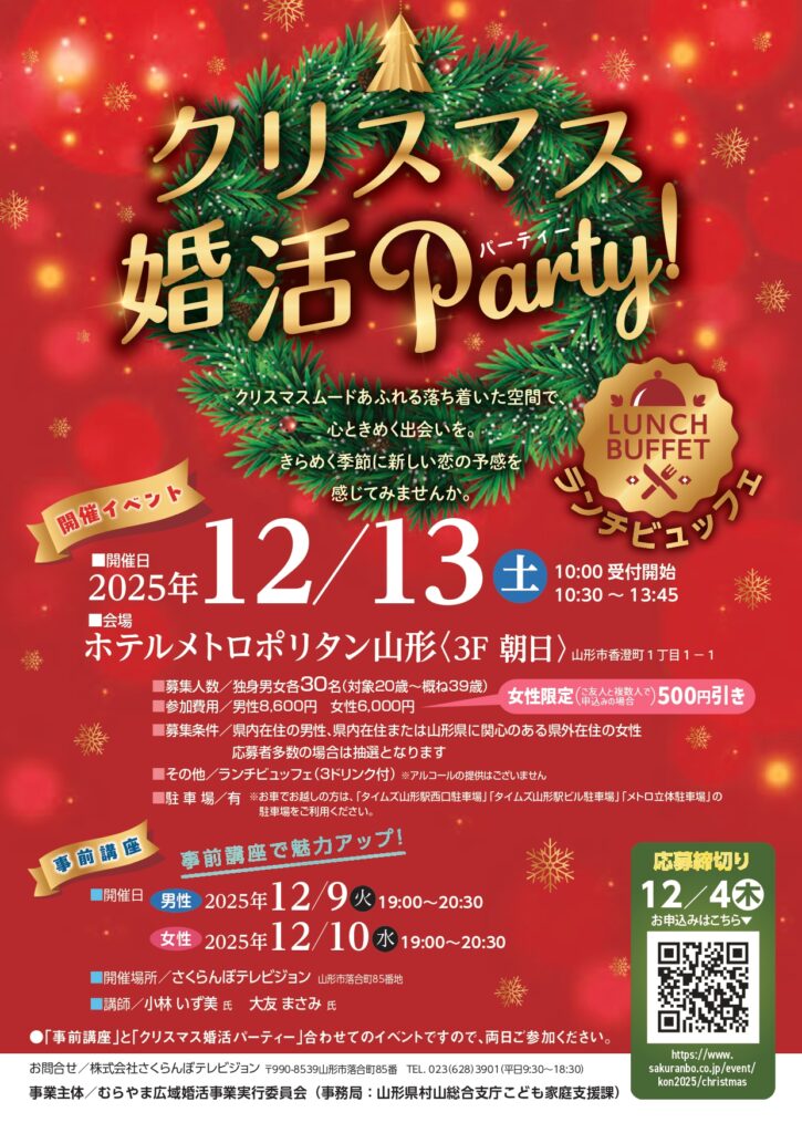 | 主催者 | 事業主体:むらやま広域婚活事業実行委員会(山形県村山総合支庁こども家庭支援課) |