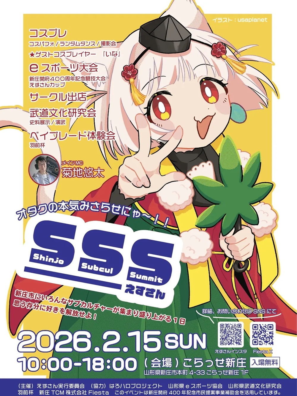 | 主催者 | 主催:えすさん実行委員会 協力:はろハロプロジェクト、山形県eスポーツ協会、山形県武道文化研究会、羽前杯、新庄TCM株式会社Fiesta |
