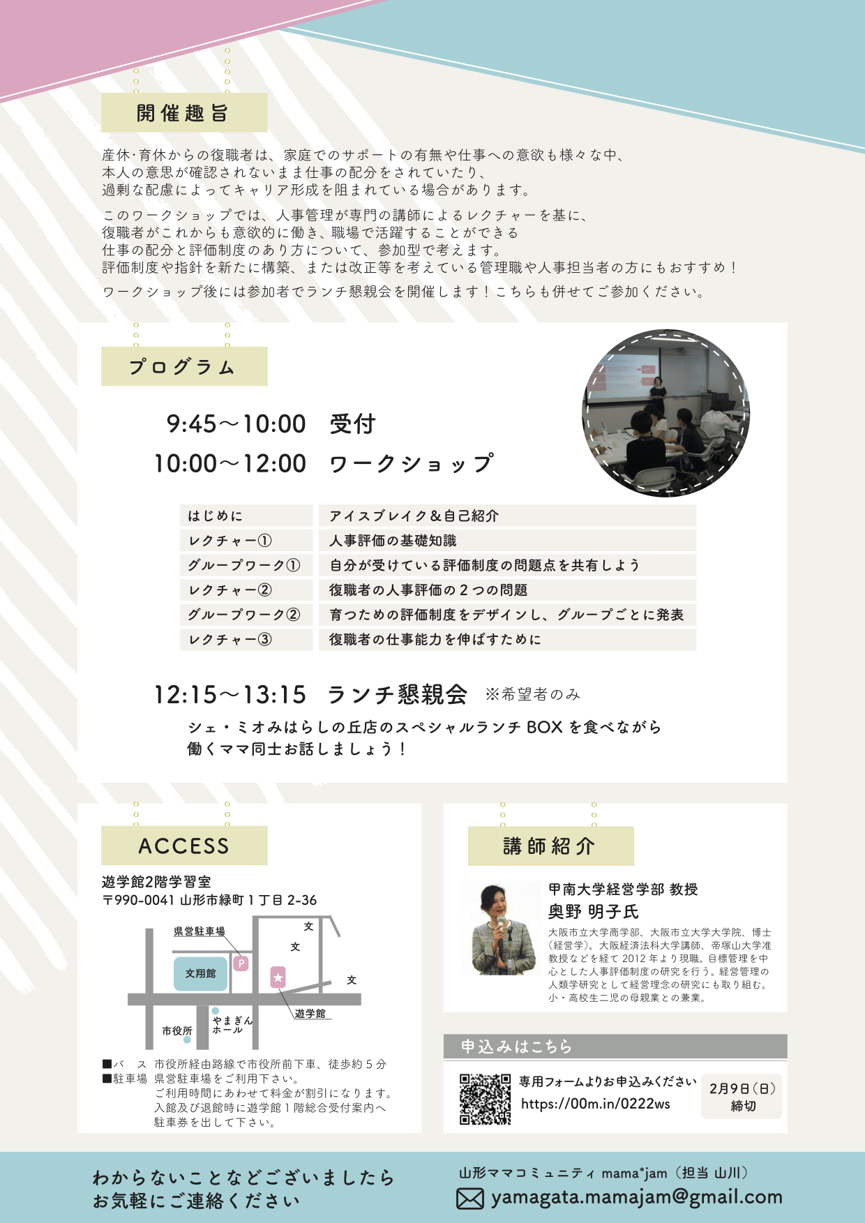 連絡先 | 山形ママコミュニティmama*jam yamagata.mamajam@gmail.com |