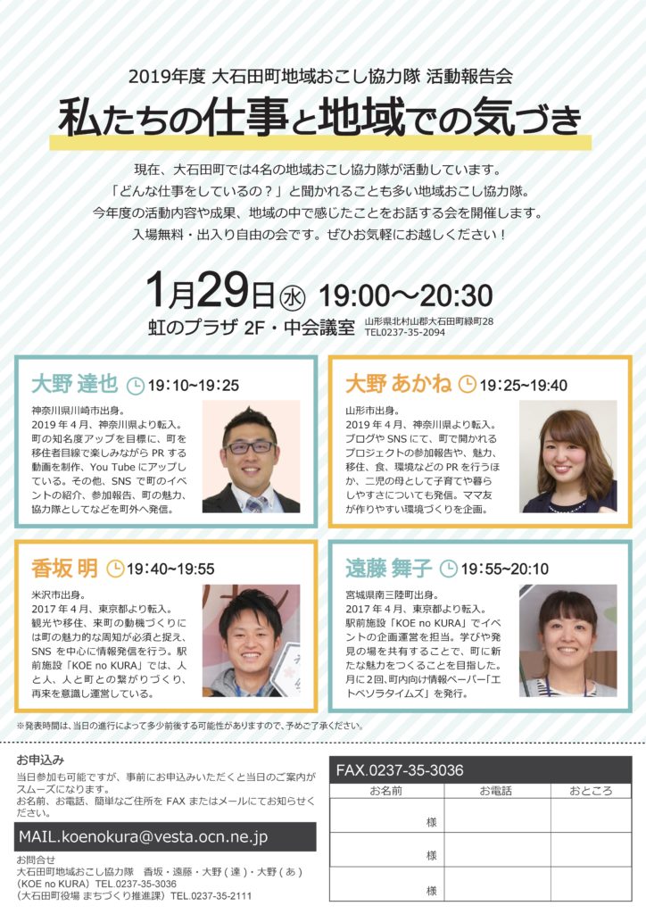 添付ファイル | 大石田町地域おこし協力隊活動報告会チラシ |