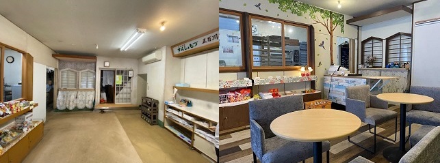 次ã®ã‚¹ãƒ†ãƒƒãƒ—ã§ã¯ã‚µãƒãƒ¼ã‚¿ãƒ¼ã®èŠ³è³€ã•ん(DIYã§ã‚«ãƒ•ã‚§ã‚’é–‹æ¥ã—ãŸçµŒé¨“者)ã«ã€åº—ã¾ã§æ¥ã¦ã‚‚らã£ã¦æŒ‡å°Žã‚’å—ã‘ã¾ã—ãŸã€‚ã”覧ã®é€šã‚Šæ”¹è£…完了ã¾ã§æ¼•ãŽç€ã‘ã¾ã—ãŸã€‚