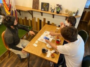 åœ°å…ƒã®æœæ—¥ä¸å¦æ ¡ã®ç”Ÿå¾’ã•ã‚“ãŒæ‰‹ä¼ã£ã¦ãれãŸã‚“ã§ã™ã‚ˆã€‚å¤ã«è·å ´ä½“験ã§ä¸å¦ç”Ÿã®å—ã‘入れをã—ãŸç¸ã§ã€ç§‹ã«æŽˆæ¥ã®ä¸€ç’°ã§é€±ï¼‘回ã»ã©æ‰‹ä¼ã„ã«æ¥ã¦ãれã¦ã€ã¿ã‚“ãªã§å£ã‚„天井を塗りã¾ã—ãŸã€‚