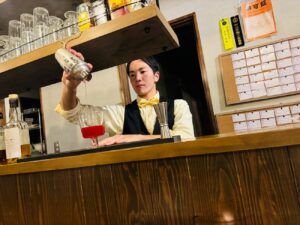 ãã†ã§ã™ã€‚ãŠåº—ã®åˆ‡ã‚Šç››ã‚Šã¯åŸºæœ¬ã²ã¨ã‚Šã§è¡Œã£ã¦ã„ã‚‹ã®ã§ã€ãƒãƒ¼ãƒ†ãƒ³ãƒ€ãƒ¼ã¨ã—ã¦ã€ãŠé…’ã®æä¾›ã‚„è»½é£Ÿã®èª¿ç†ã¨æŽ¥å®¢ã€ã¨ãã©ãイベントã®é–‹å‚¬ãªã©ãŒä¸»ãªãŠä»•事ã§ã™ã€‚ã‚‚ã¨ã‚‚ã¨å±…酒屋ã®ãƒã‚¤ãƒˆã‚‚経験もã‚ã£ãŸã‚“ã§ã™ãŒã€ãƒãƒ¼ã®ãŠä»•事ã¯ç±³æ²¢ã®ãƒ›ãƒ†ãƒ«ã®ãƒãƒ¼ã§ä¿®è¡Œã•ã›ã¦ã‚‚らã£ã¦è¦šãˆã¾ã—ãŸã€‚