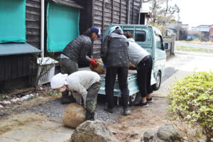 DIYã—ãªãŒã‚‰ãŠåº—ã®æº–備をã™ã™ã‚ã€ã‚ッãƒãƒ³å‘¨ã‚Šã¨ãŠæ‰‹æ´—ã„ã¯æ”¹è£…ã—ã¾ã—ãŸãŒã€å®¢å¸ã«ãªã£ã¦ã„ã‚‹ã¨ã“ã‚ã¯è£œä¿®ç¨‹åº¦ã§ã»ã¨ã‚“ã©æ‰‹ã‚’ã¤ã‘ã¦ã„ã¾ã›ã‚“。é§è»Šå ´ã‹ã‚‰å…¥ã‚Šå£ã¾ã§ã®ã‚¢ãƒ—ãƒãƒ¼ãƒã«ä½¿ã£ã¦ã„る石もã€é³¥æµ·å±±ã®éº“ã«ç•‘ã‚’æŒã£ã¦ã„る知人ã‹ã‚‰è²ã‚Šå—ã‘ã€è‡ªåˆ†ãŸã¡ã§é‹ã‚“ã§ã€æ‰‹ä½œã‚Šã—ã¾ã—ãŸã€‚