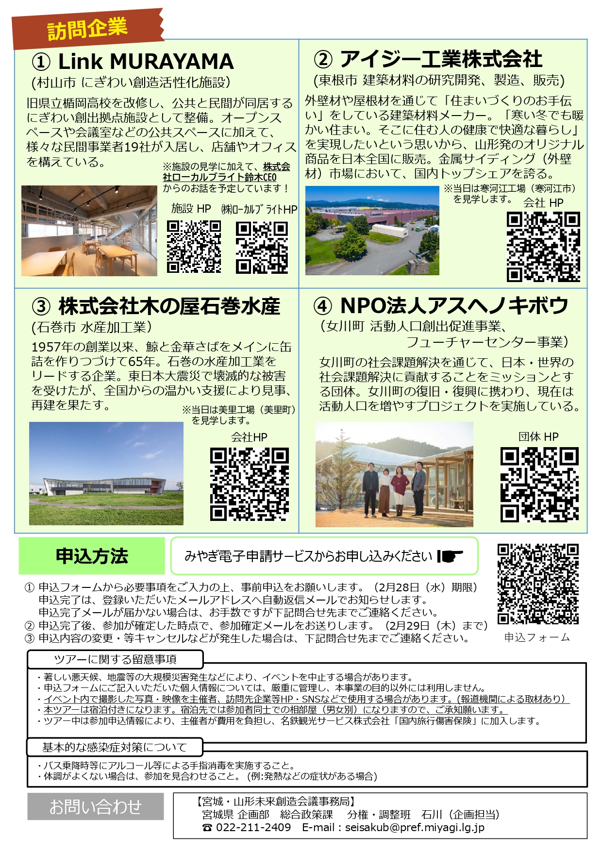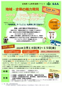 山形県ã¨å®®åŸŽçœŒã®é€£æºã‚¤ãƒ™ãƒ³ãƒˆã¨ã—ã¦ã€ä¸¡çœŒã®ä¼æ¥ç‰ã‚’ãƒã‚¹ã§å·¡ã‚‹ã€Œã¿ã‚„ãŽãƒ»ã‚„ã¾ãŒãŸè‹¥è€…交æµãƒ•ィールドワークツアーã€ã‚’開催ã—ã¾ã™ã€‚