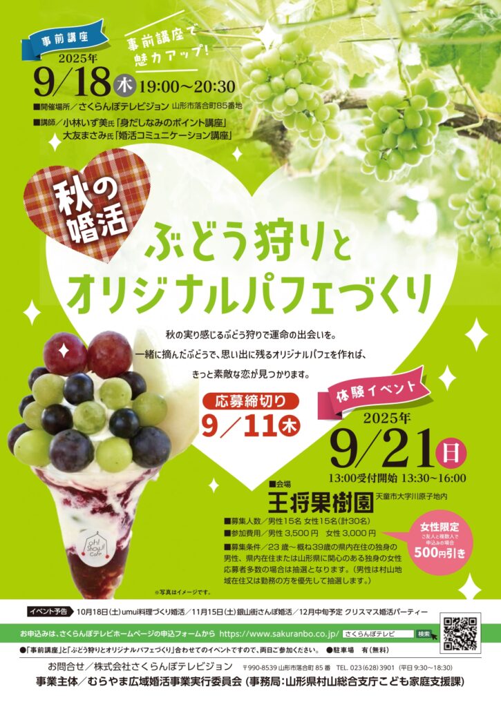 秋ã®å©šæ´»ã€Œã¶ã©ã†ç‹©ã‚Šã¨ã‚ªãƒªã‚¸ãƒŠãƒ«ãƒ‘フェã¥ãりã€ã‚’開催ã—ã¾ã™ï¼