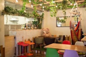 カフェã«ã¯ãƒãƒ³ãƒ¢ãƒƒã‚¯ãƒã‚§ã‚¢ãƒ¼ã‚„èŠç”Ÿå¸ãŒã‚りã€2階ã®ãƒ†ãƒ©ã‚¹å¸ã§ã¯è‡ªç„¶ã‚’å ªèƒ½ã—ãªãŒã‚‰æ„›çЬã¨ä¸€ç·’ã«é£Ÿäº‹ã‚‚ã§ãã¾ã™ã€‚野èœãŸã£ã·ã‚Šã®ãƒœãƒªãƒ¥ãƒ¼ãƒ サンドや熱々ã®ã‚¹ã‚レットカレーãŒäººæ°—ã§ã€ã‚³ãƒ¼ãƒ’ーã¯ã‚ªãƒªã‚¸ãƒŠãƒ«ã§ç„™ç…Žãƒ–レンドã—ãŸè±†ã‚’使用ã—ã¦ã„ã¾ã™ã€‚ã¾ãŸã€ã‚²ã‚¹ãƒˆãƒã‚¦ã‚¹ã‚‚ä½µè¨ã—ã¦ã„ã¦ã€è²¸åˆ‡ãƒ‘ーティã‹ã‚‰ãã®ã¾ã¾ã”宿泊ã¨ã„ã£ãŸã”利用もå¯èƒ½ã§ã™ã€‚