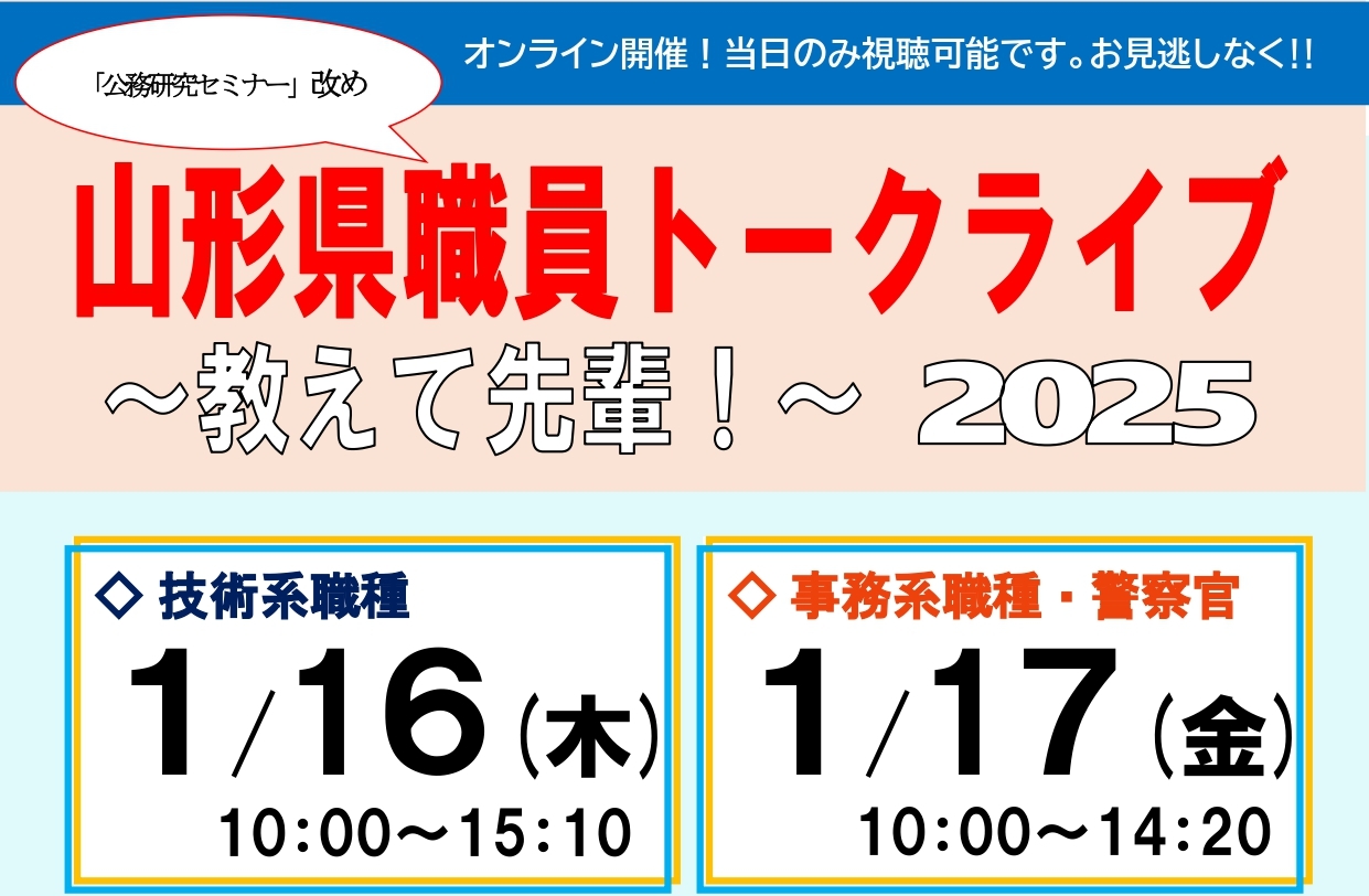 「山形県職員トークライブ ~教えて先輩!~」及び「山形県庁職場見学会」開催!