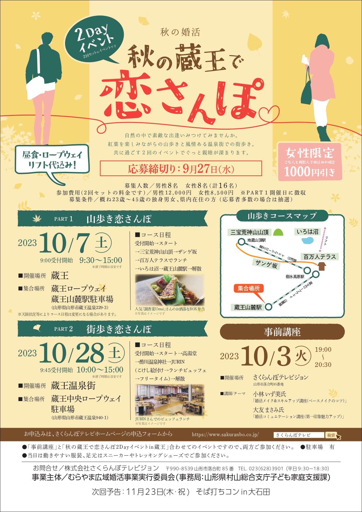 「秋の蔵王で恋さんぽ」女性のみ応募締切延長中です!(応募締切:10/3)
