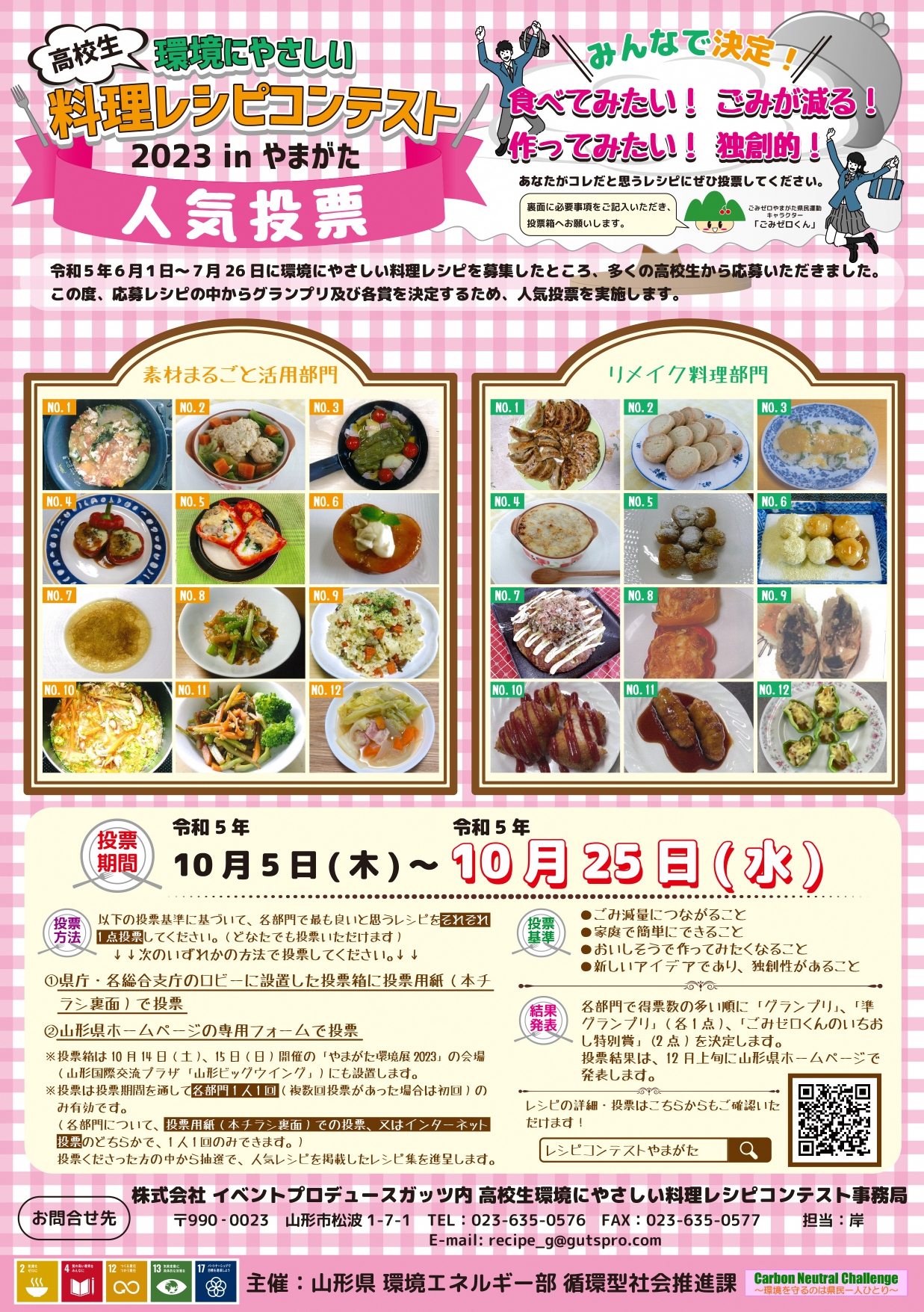高校生環境にやさしい料理レシピコンテスト2023 inやまがたの人気投票の実施について