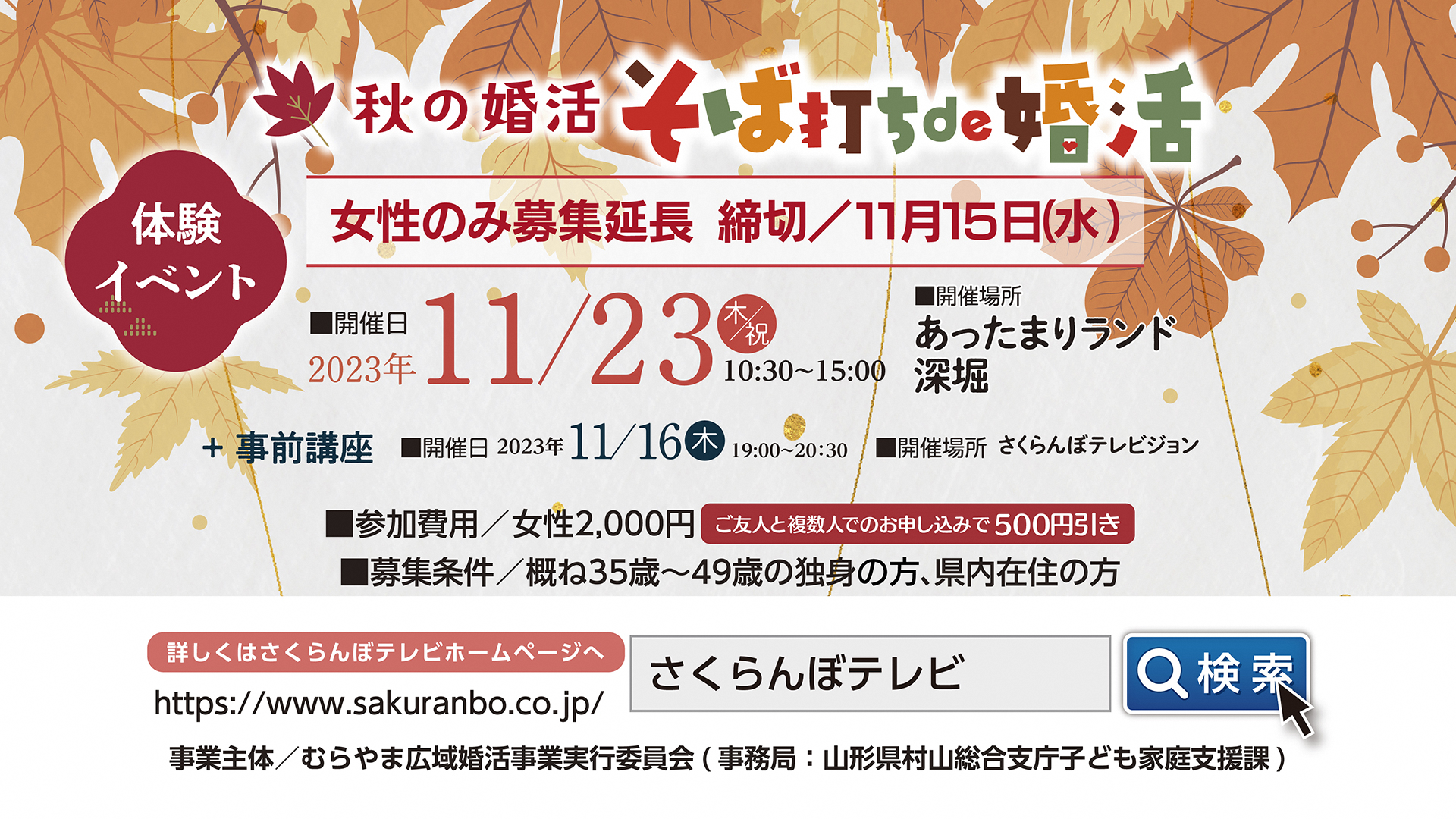 そば打ちde婚活を開催します!(女性のみ応募締切延長中:11/15)