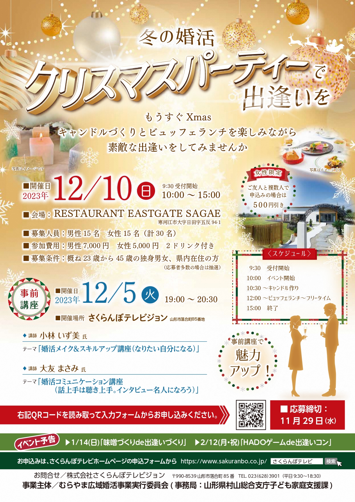 クリスマスパーティで出逢いを(女性のみ応募締切延長:12/5)