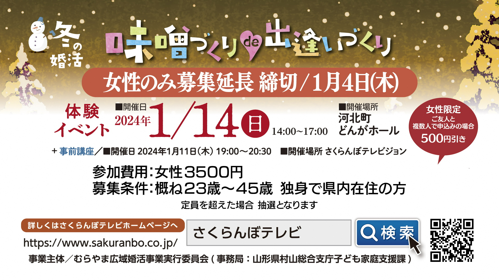 味噌づくり体験で出逢いを(女性のみ応募締切延長:1月4日まで)