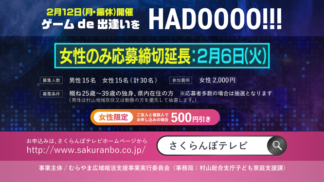 ゲームde出逢いを(女性のみ応募締切延長:2/6まで)