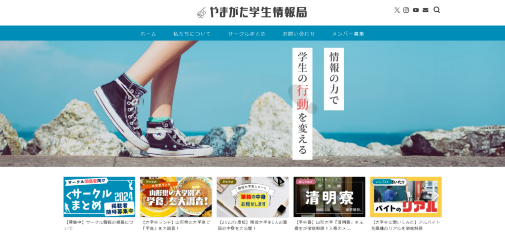 山形県内の学生・高校生が、「山形の学生生活をちょっと面白くする」をスローガンに、地域の魅力や学生生活に役立つ情報を発信しているメディア団体です。現在は、Webサイトの記事執筆やSNS運営を中心に活動しています。