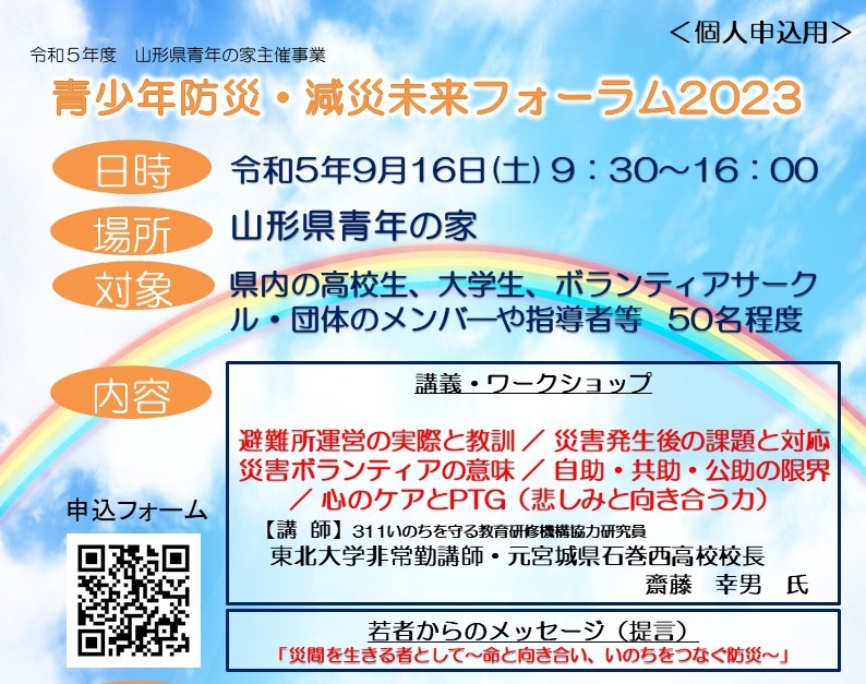 【参加者募集】青少年防災・減災未来フォーラム2023