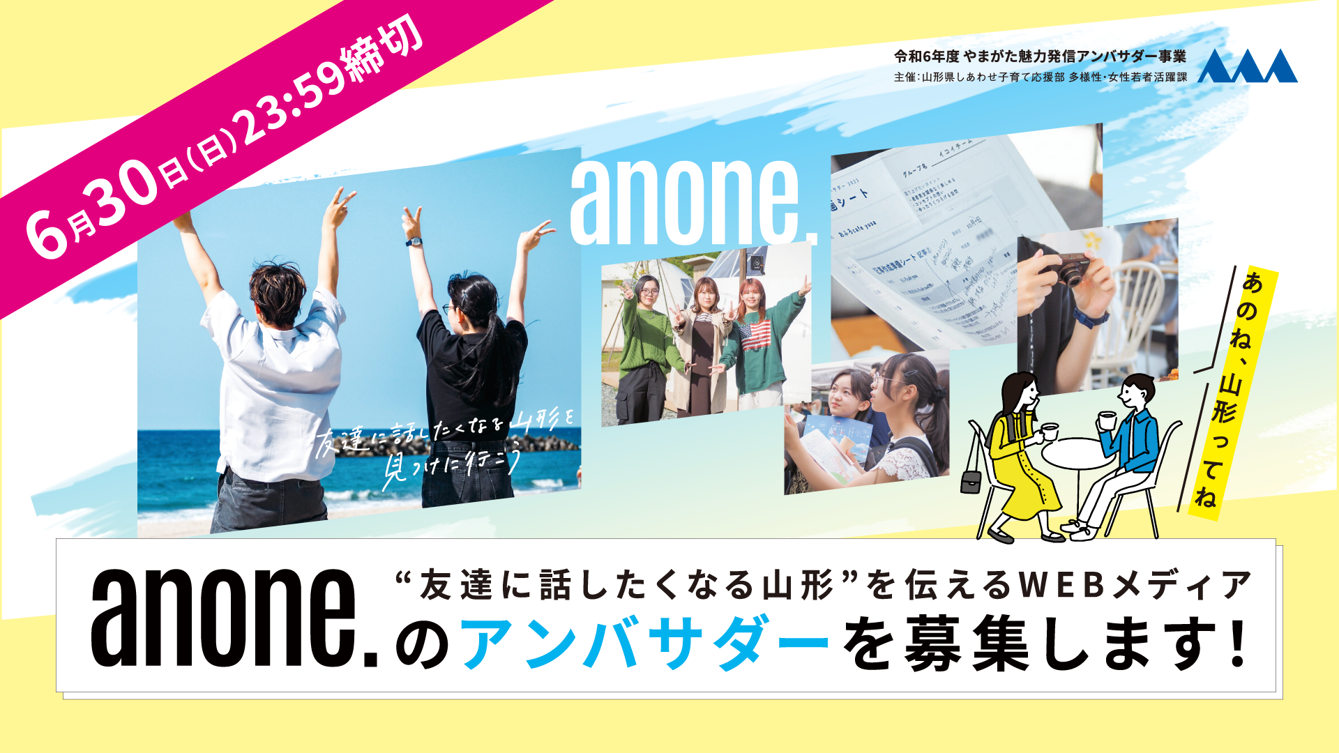“友達に話したくなる山形” を伝えるwebメディア 「anone.」のアンバサダーを募集します!