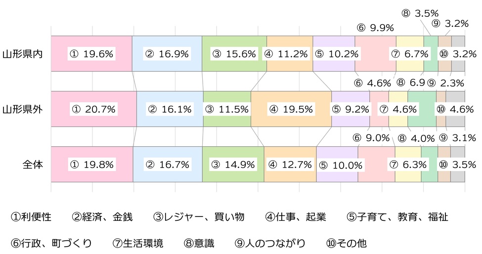 制度、サービス(10), 町づくり(10), 地域の活性化(7), 地域の発展(7), 若者への支援(6), その他(4)生活環境 32回答