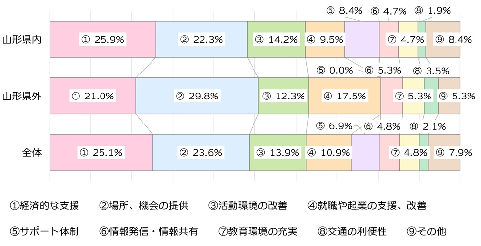 仕事の選択肢(21), 就職先の確保(15), 仕事環境(13), 仕事全般(9), 雇用の待遇(4), その他(2)子育て、教育、福祉 52回答