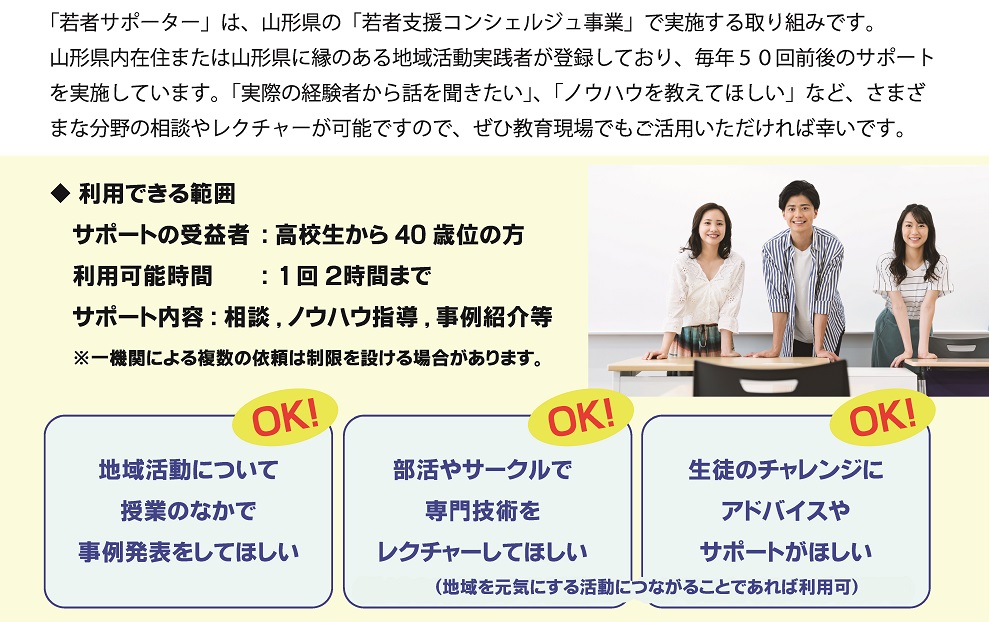 若者サポーターが高校以上の教育機関でも利用できるようになりました